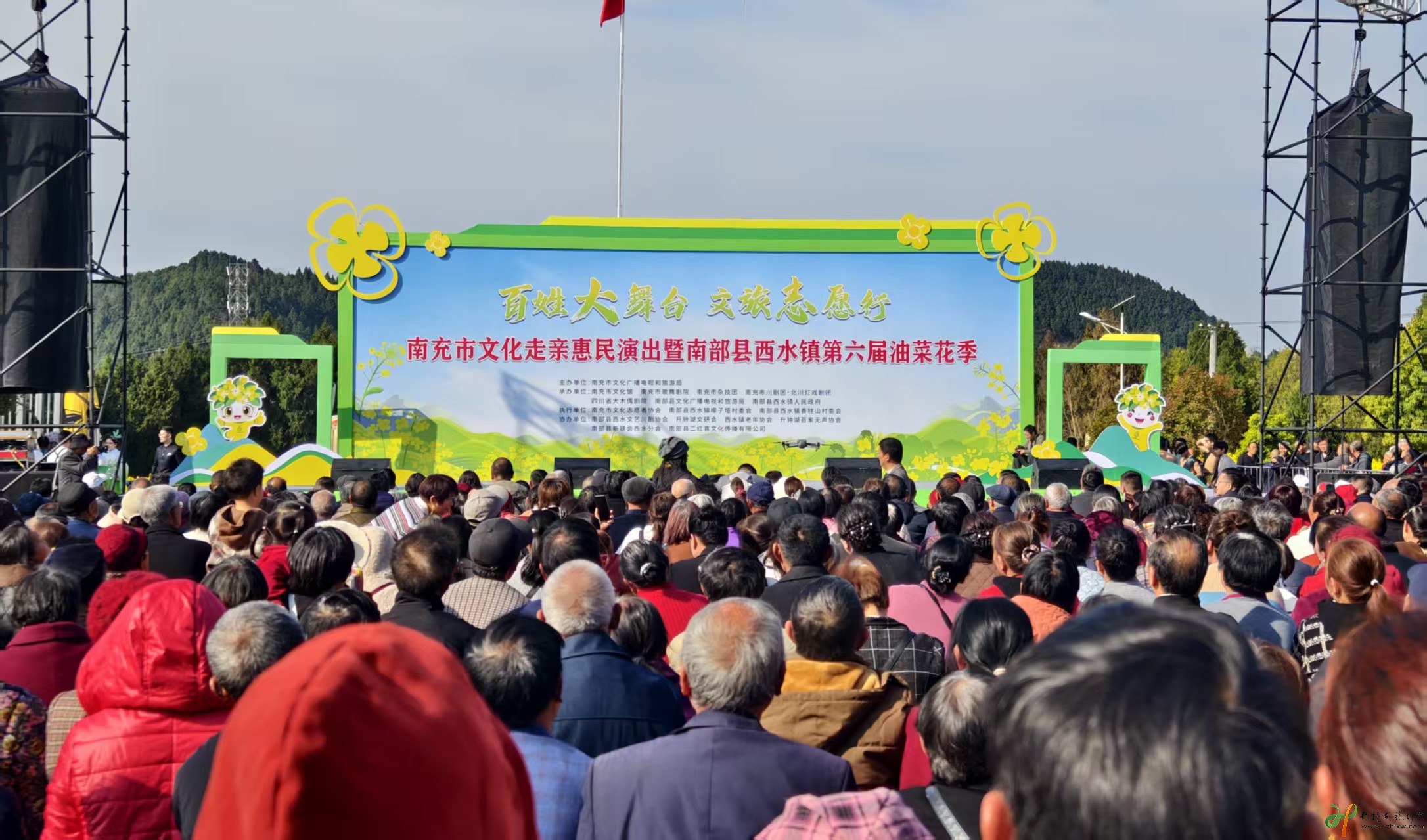 查看更多>>2026年3月11日上午,由南充市文化广播电视和旅游局主办,多家市级文艺院团及南部县相关单位联合承办的南充市文化走亲惠民演出暨南部县西水镇第六届油菜花季,在西水镇香柱...